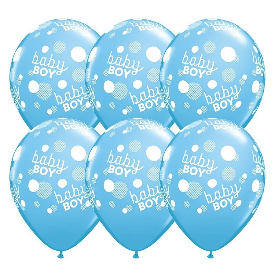 11 inch-es Baby Boy - Baba Fiú Kék Dots - Pöttyös Lufi Babaszületésre (6 db/csomag), Héliummal