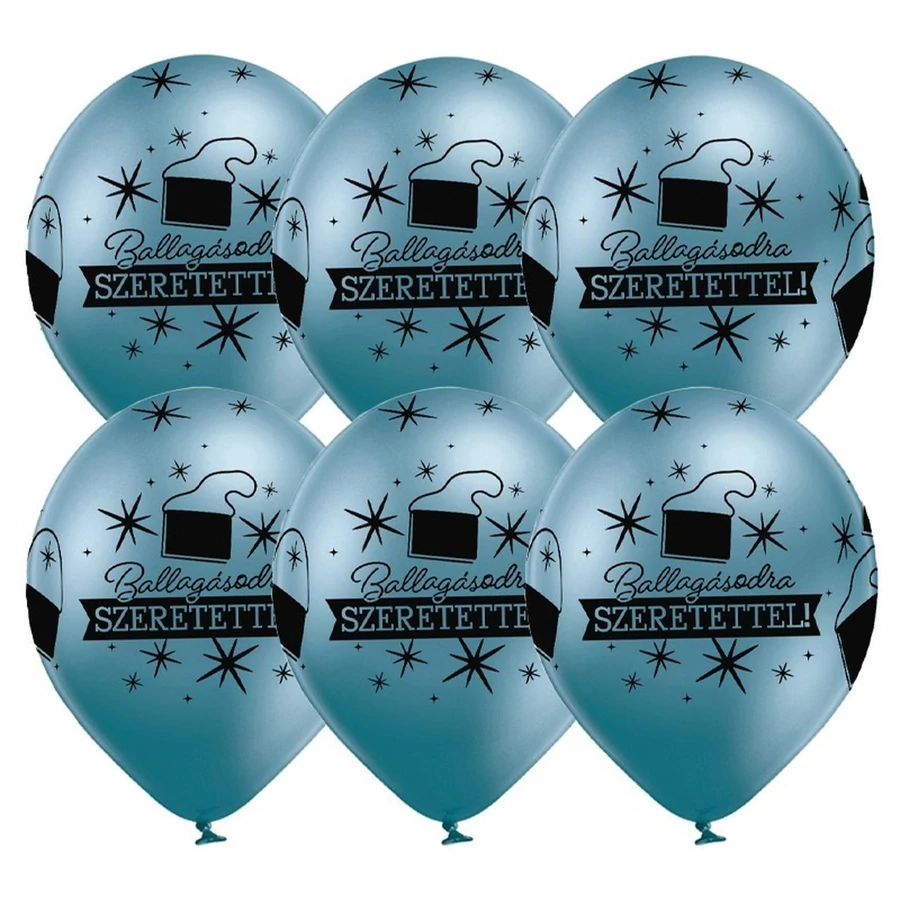 11 inch-es Ballagásodra Szeretettel Chrome Kék Lufi Ballagásra (6 db/csomag), Héliummal