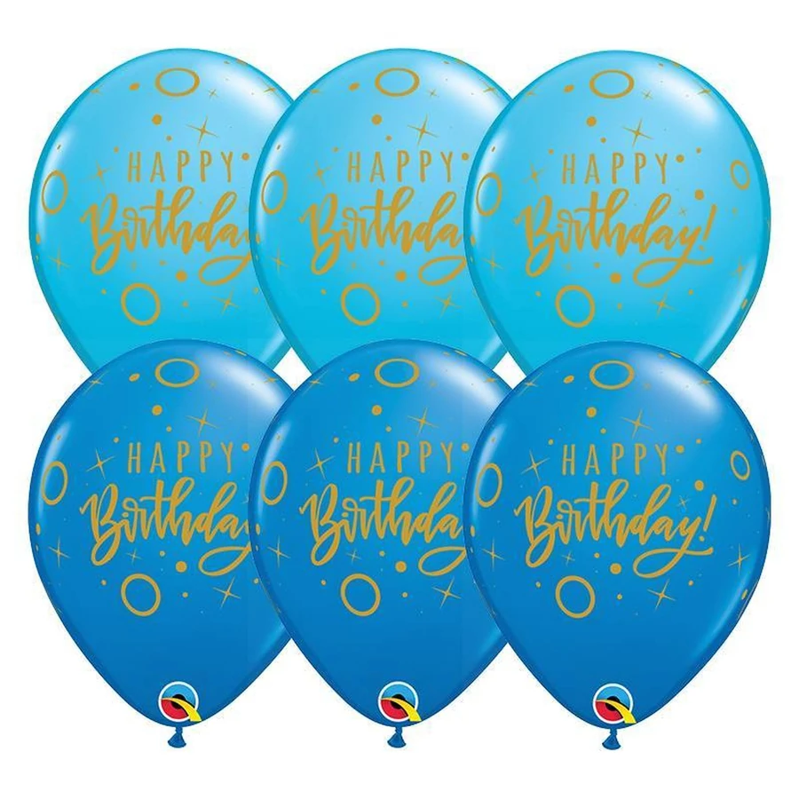 11 inch-es Birthday Dots & Sparkles Blue Szülinapi Lufi (6 db/csomag), Héliummal