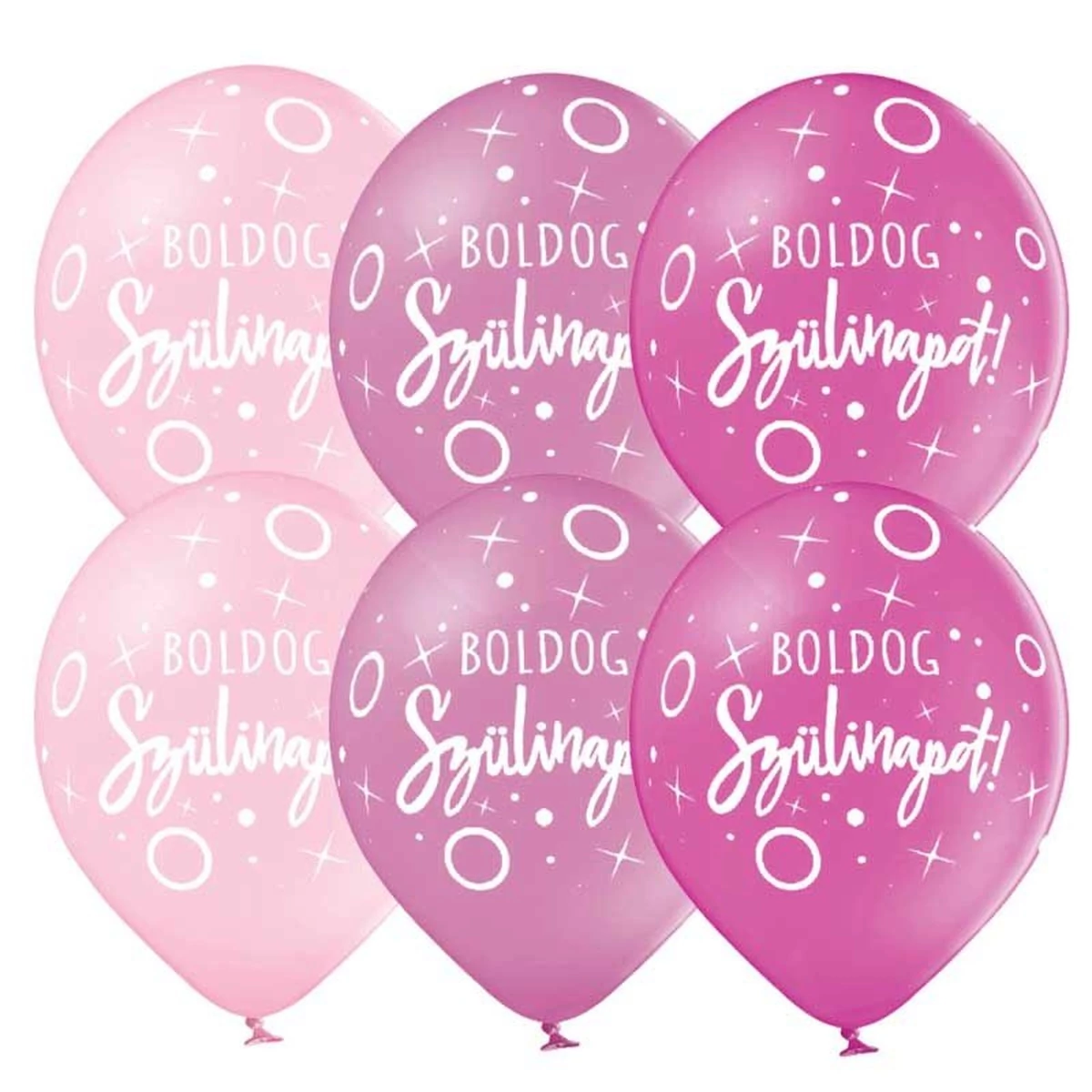 11 inch-es Boldog Születésnapot Dots & Sparkles Lányos Színekben Lufi (6 db/csomag) Héliummal