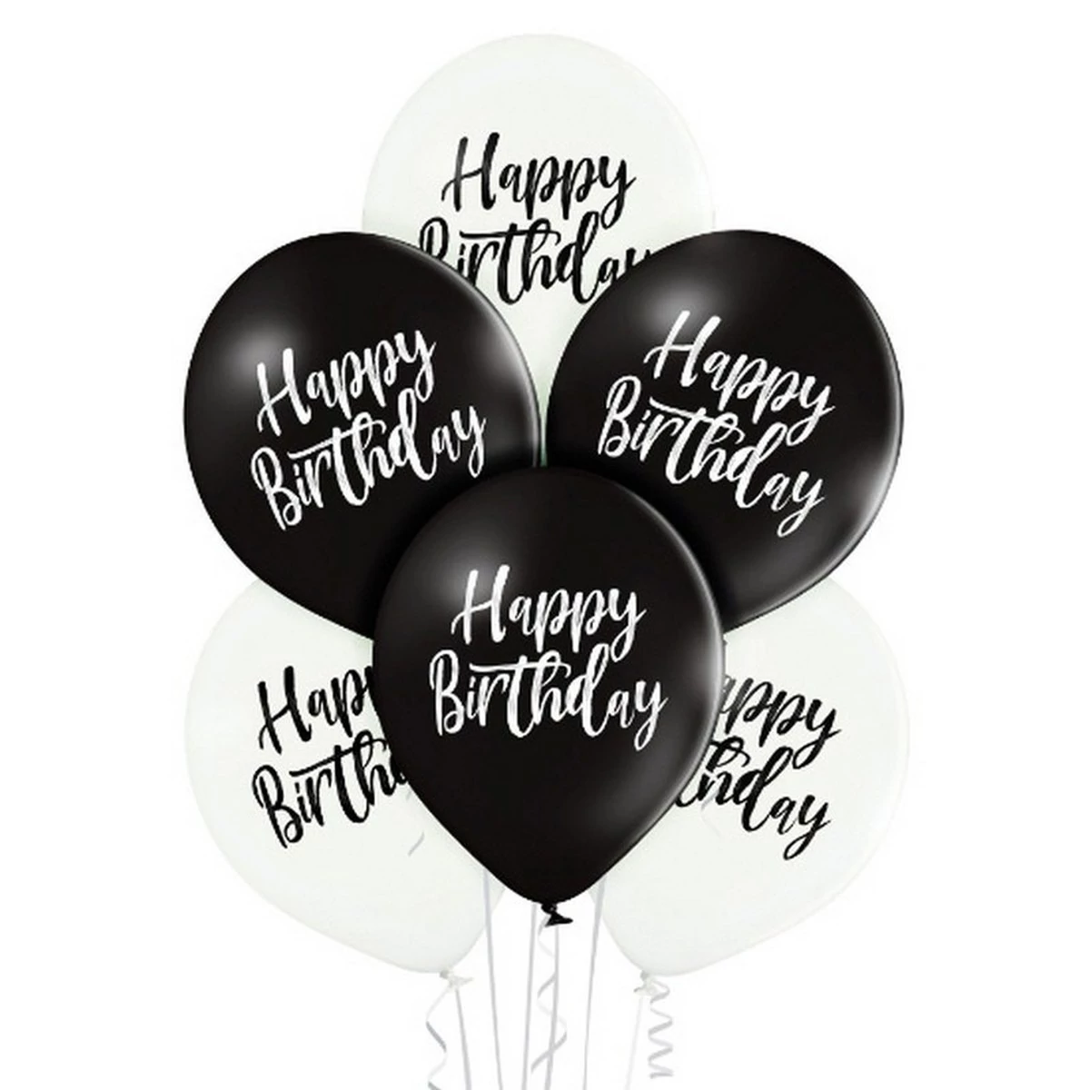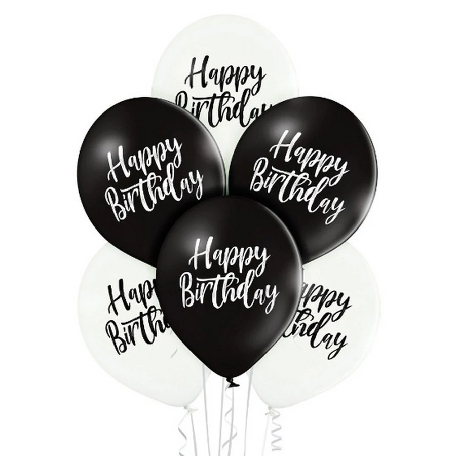 11 inch-es Happy Birthday Script Black and White Szülinapi Lufi (6 db/csomag), Héliummal