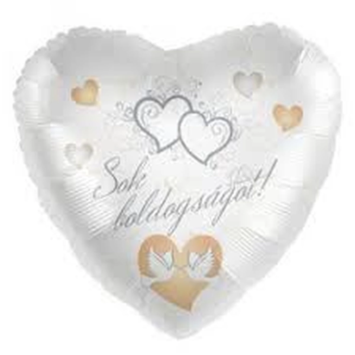 17 inch-es Sok Boldogságot! Galamb Mintás Ezüst Fehér Esküvői Szív Fólia Lufi