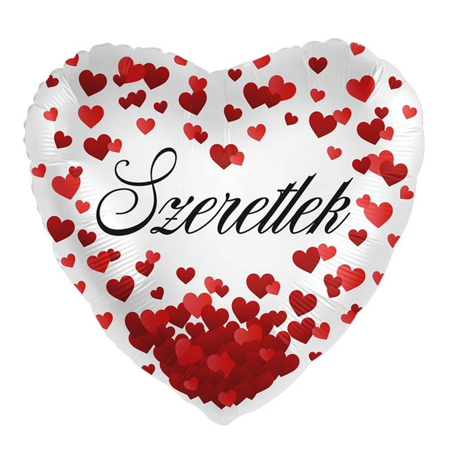 17 inch-es Szeretlek Feliratú Szívecske Mintás Fólia Lufi Héliummal