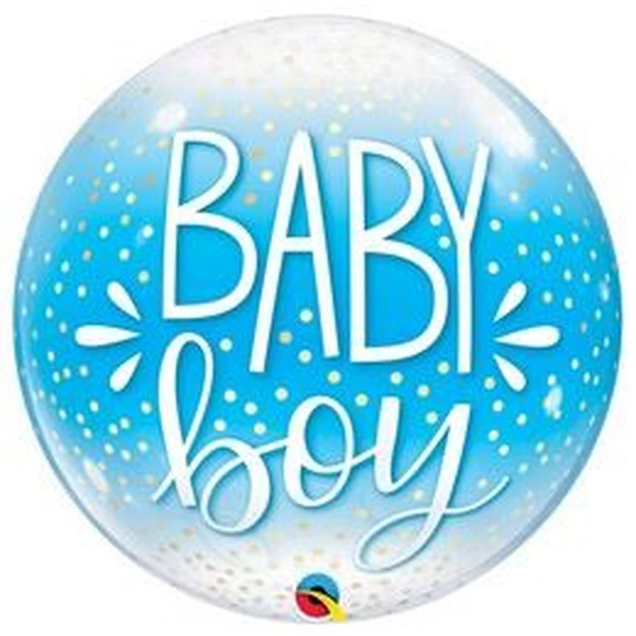 22 inch-es Baby Boy Blue & Confetti Dots Bubble Lufi Babaszületésre