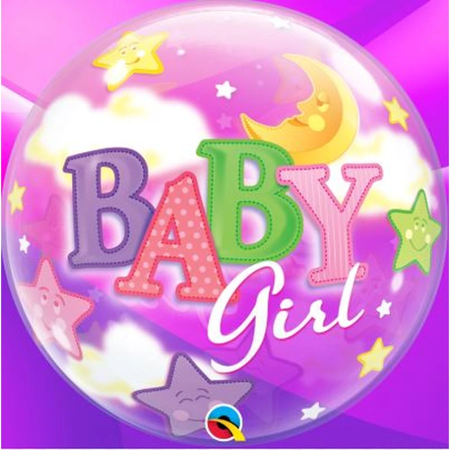 22 inch-es Baby Girl Moon és Stars Bubbles Bébi Lufi Babaszületésre