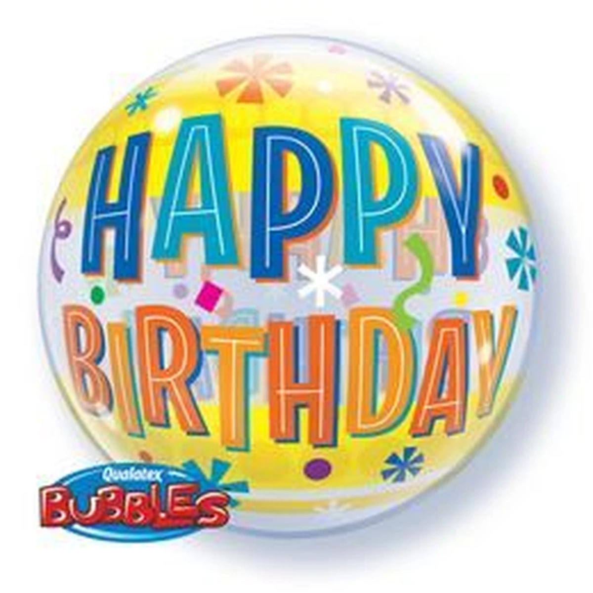 22 inch-es Birthday Fun & Yellow Bands Szülinapi Bubble Lufi