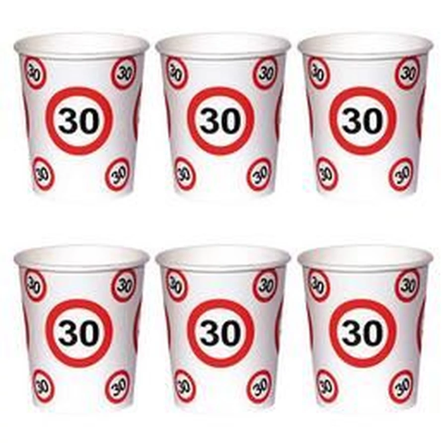 30-as Számos Sebességkorlátozó Szülinapi Papír Parti Pohár - 250 ml, 6 db-os