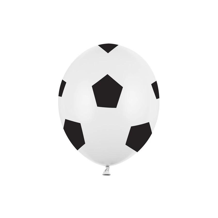 Strong Balloons Focilabda Tiszta fehér színben, fekete ötoldalas nyomtatással, 30 cm átmérőjű. (1 csomag / 6 db)