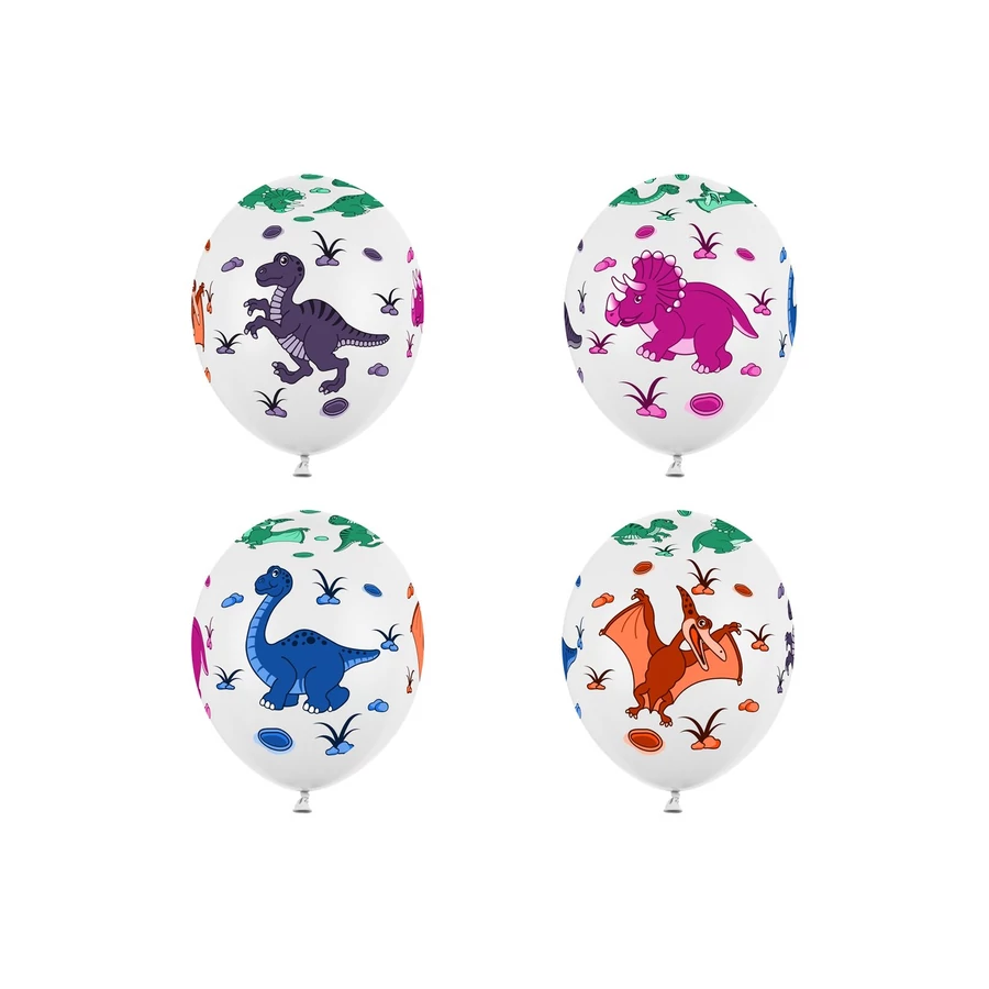 Strong lufik dinoszauruszok, pasztell tiszta fehér, ötszínű, ötoldalas nyomtatással, 30 centiméter átmérőjű. (1 csomag / 6 db)