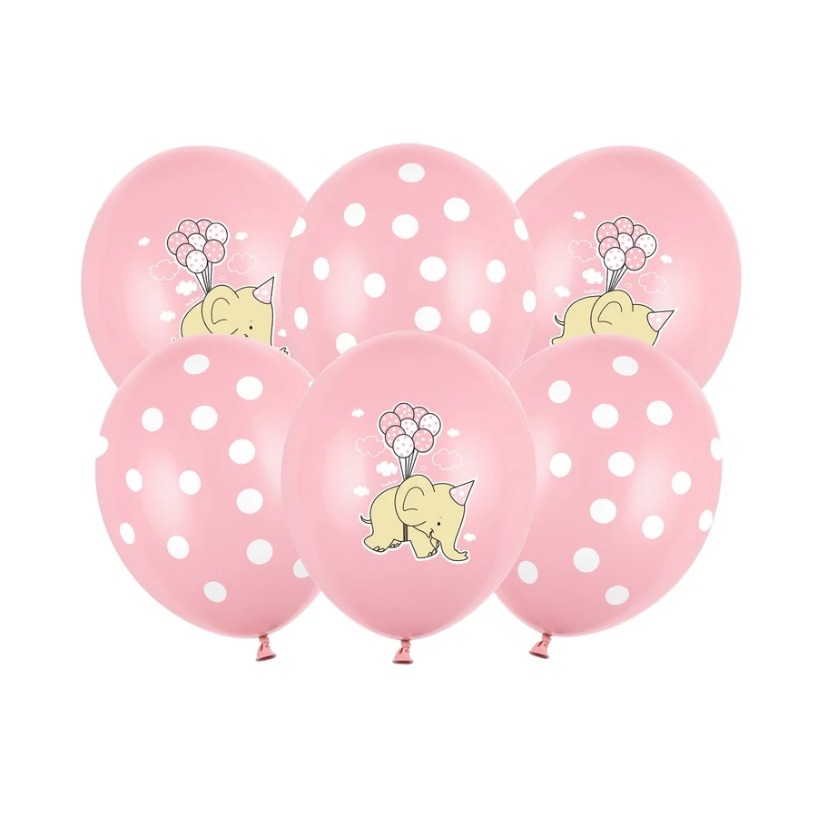 Strong lufik, Elefánt, Pasztell Bébi Rózsaszín Mix, a készlet kétoldalas Elefánt és fehér ötoldalas Pötty nyomtatású lufikat tartalmaz. (1 csomag / 6 db.)