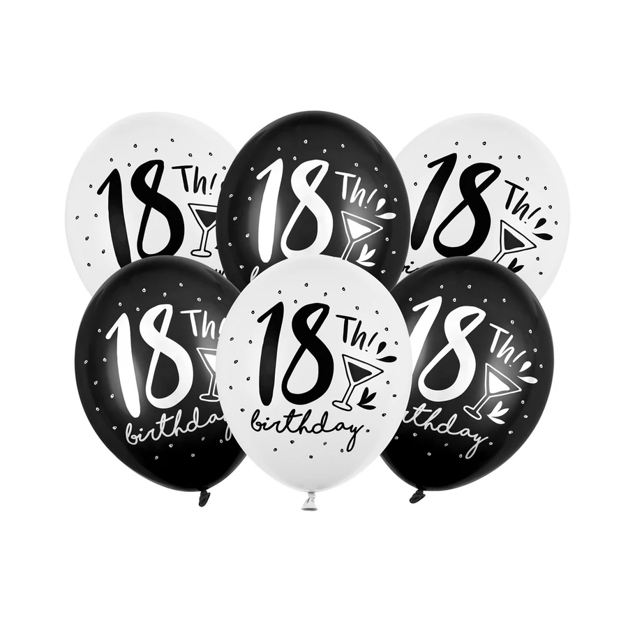 Strong Lufi 18. születésnap, fehér és fekete ötoldalas nyomtatás, színek keveréke (tiszta fehér és fekete), átmérője 30 cm. (1 csomag / 6 db)
