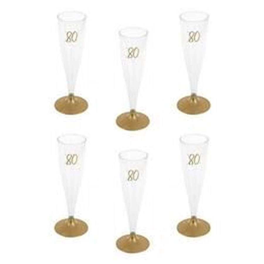 80-as Arany Szülinapi Parti Pezsgőspohár - 14 cl-es, 6 db-os