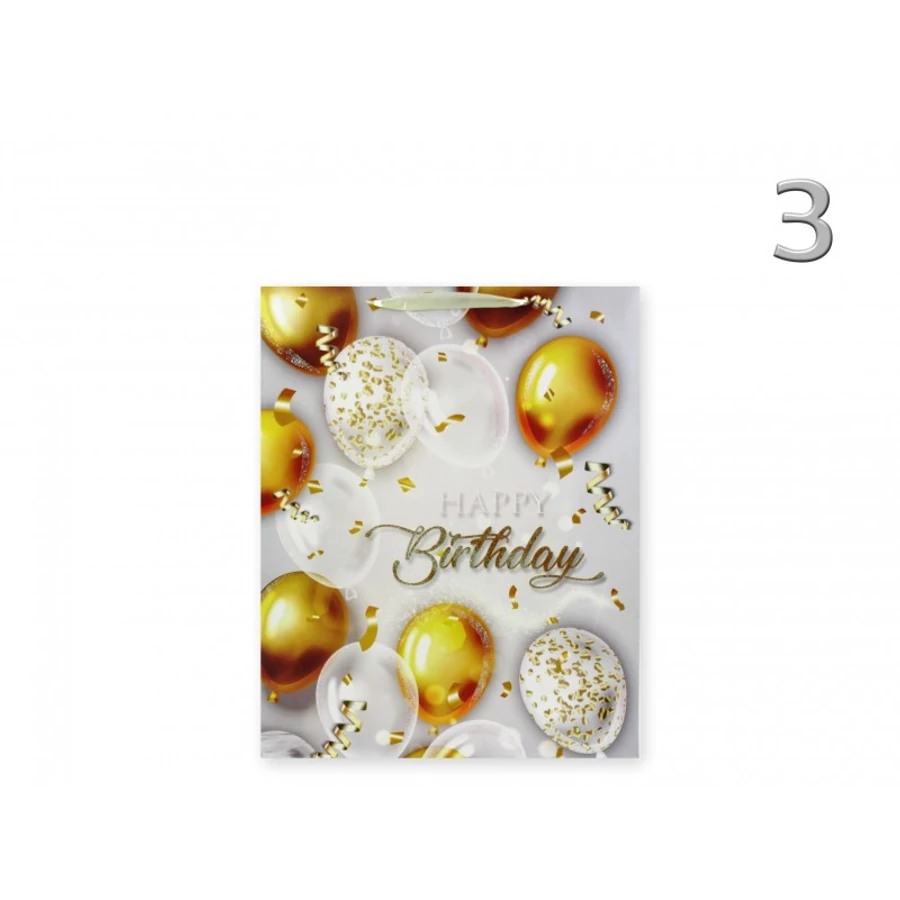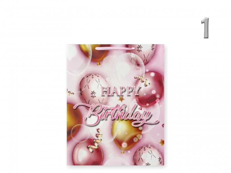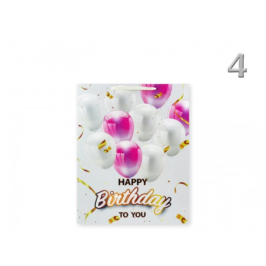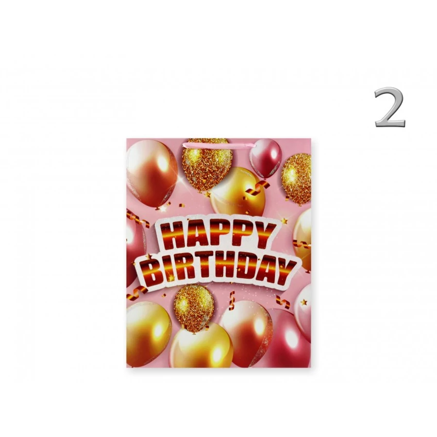 Ajándéktasak Happy Birthday lufis közép 18x9x23cm