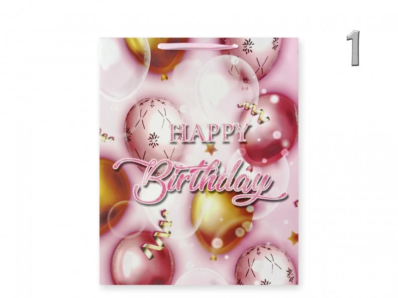 Ajándéktasak Happy Birthday lufis nagy 26x10x32cm