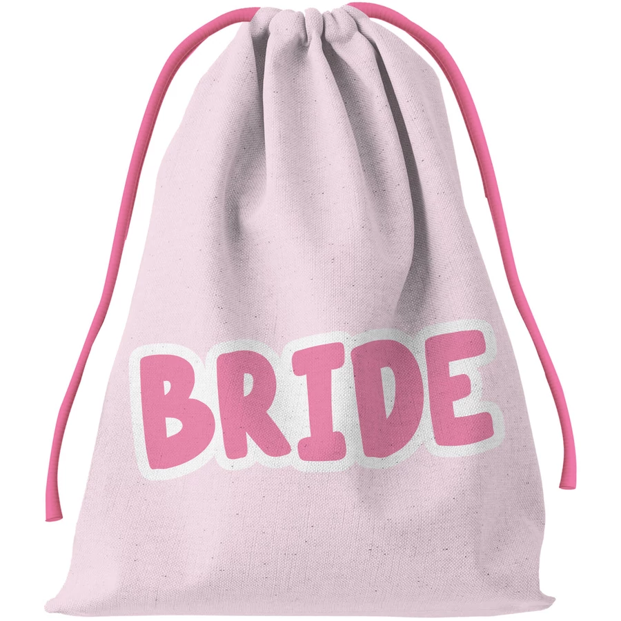 A zsinór ugyanolyan rózsaszín, mint az ajándéktáskán található „BRIDE SQUAD” felirat.