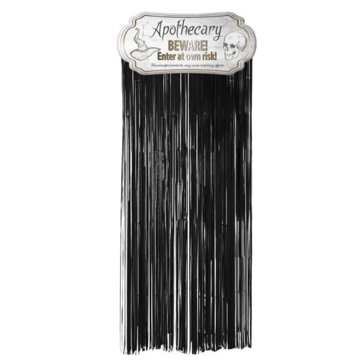 Belépés saját felelősségre! Ajtófüggöny fejléccel - Hátborzongató érdekességek - 2 méter. Tartalma: 1 ajtófüggöny. Ezt a cikket a következő parti alkalma(k)hoz használhatja: Halloween, Theme party. Halloweenre és más kísérteties bulikra. Ennek az ajtófüggönynek a tetején egy karton tábla található, amelyen ez áll: "Patika - FIGYELEM! Belépés saját felelősségre! Kézzel készített termékek, meglepő hatásokat okozhatnak." A függöny körülbelül 85 cm x 2 méter. Ez az elem műanyagból készült.
