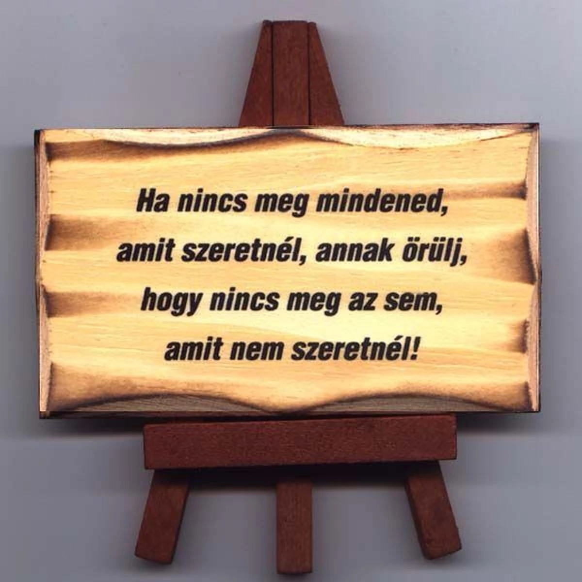Termékleírás: Fenyőfából készült kistábla, amely állványra tehető és ennek segítségével polcra helyezhető. A fatábla la