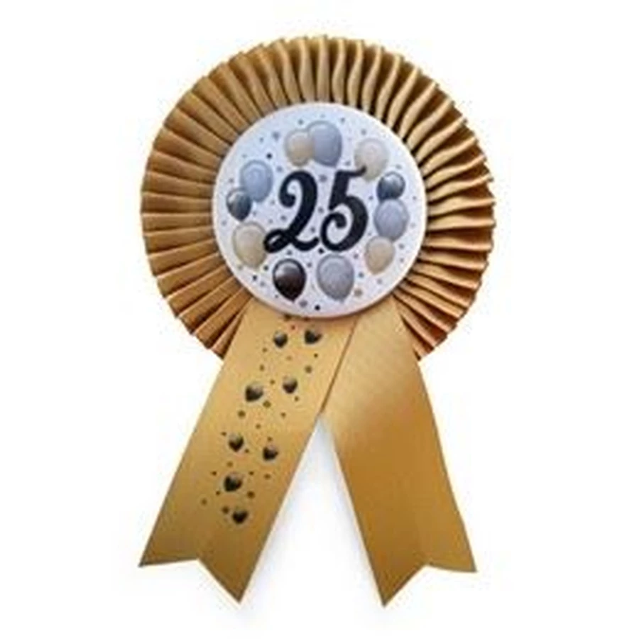 Elegáns, 25-ös, szalagos, számos szülinapi kitűző az ünnepeltnek.