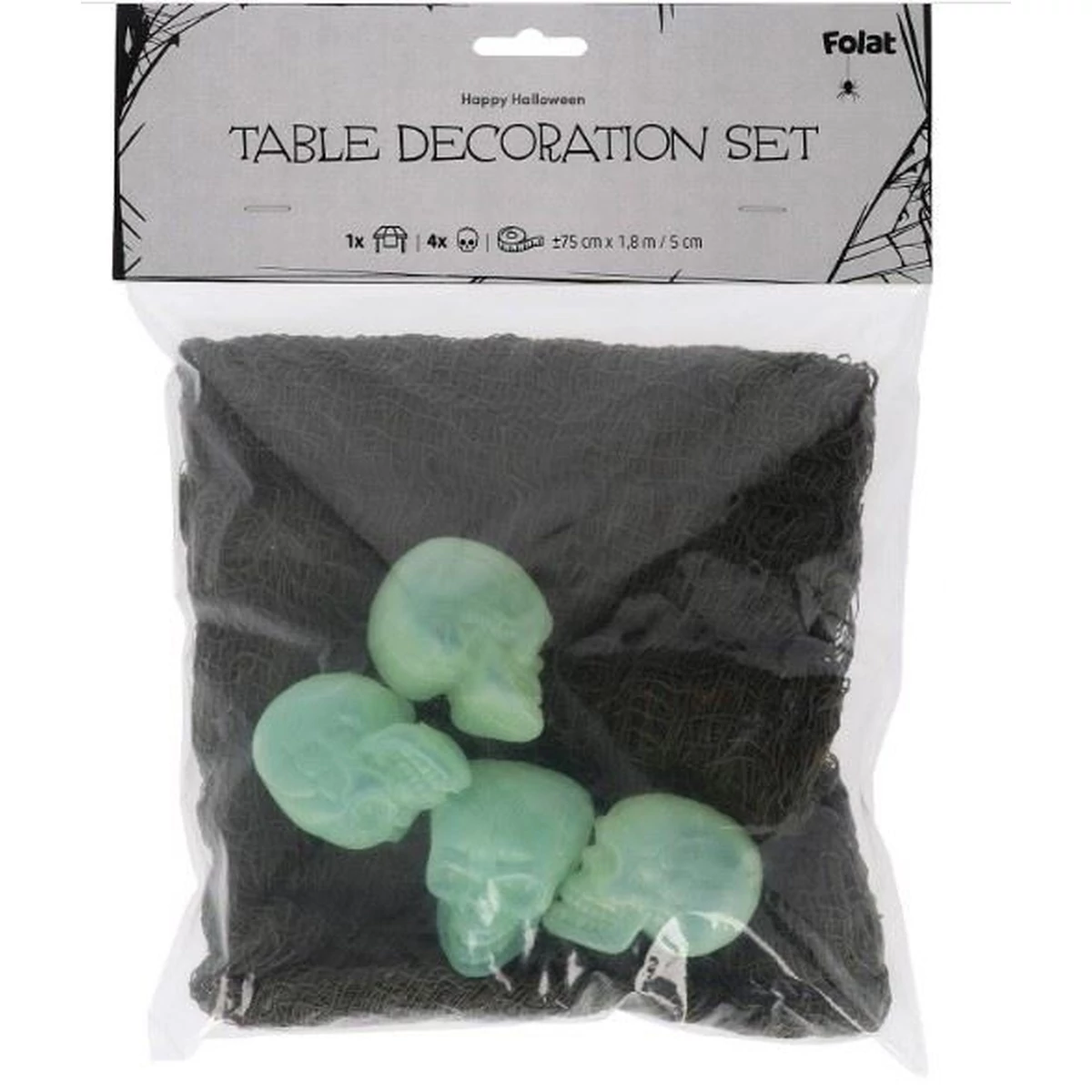 Koponyák az asztalon! Asztali futó - Happy Halloween - 5 db. Tartalma: 1 asztali futó és 4 kis koponya. Ezt a cikket a következő parti alkalma(k)hoz használhatja: Halloween, Theme party. Ez az asztali futó zöld és szabálytalanul áttört, így a gyászos terítés életre kel. Ugyanez nem mondható el a hozzá tartozó 4 kis koponyáról. Tökéletes dekoráció Halloweenre és más kísérteties bulikra. Ez az elem poliészterből és műanyagból készült.