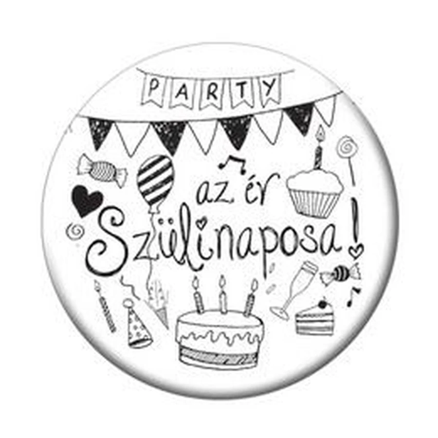 Az Év Szülinaposa feliratú fehér kitűző, mely kitűnő kiegészítő az ünnepeltnek.