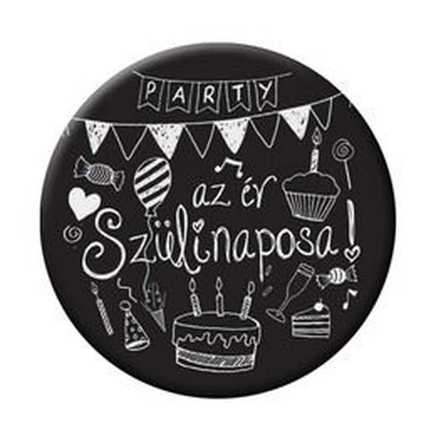 Az Év Szülinaposa feliratú fekete kitűző, mely kitűnő kiegészítő az ünnepeltnek.