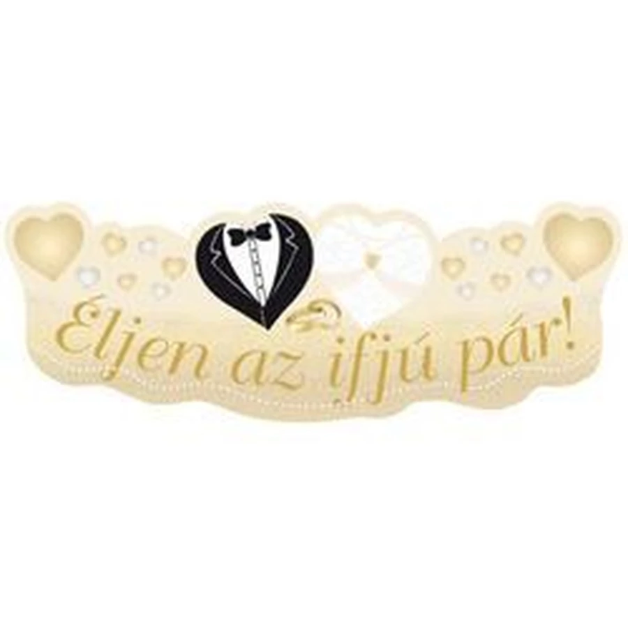 Elegáns esküvői karton dekoráció Éljen az ifjú Pár! - felirattal.