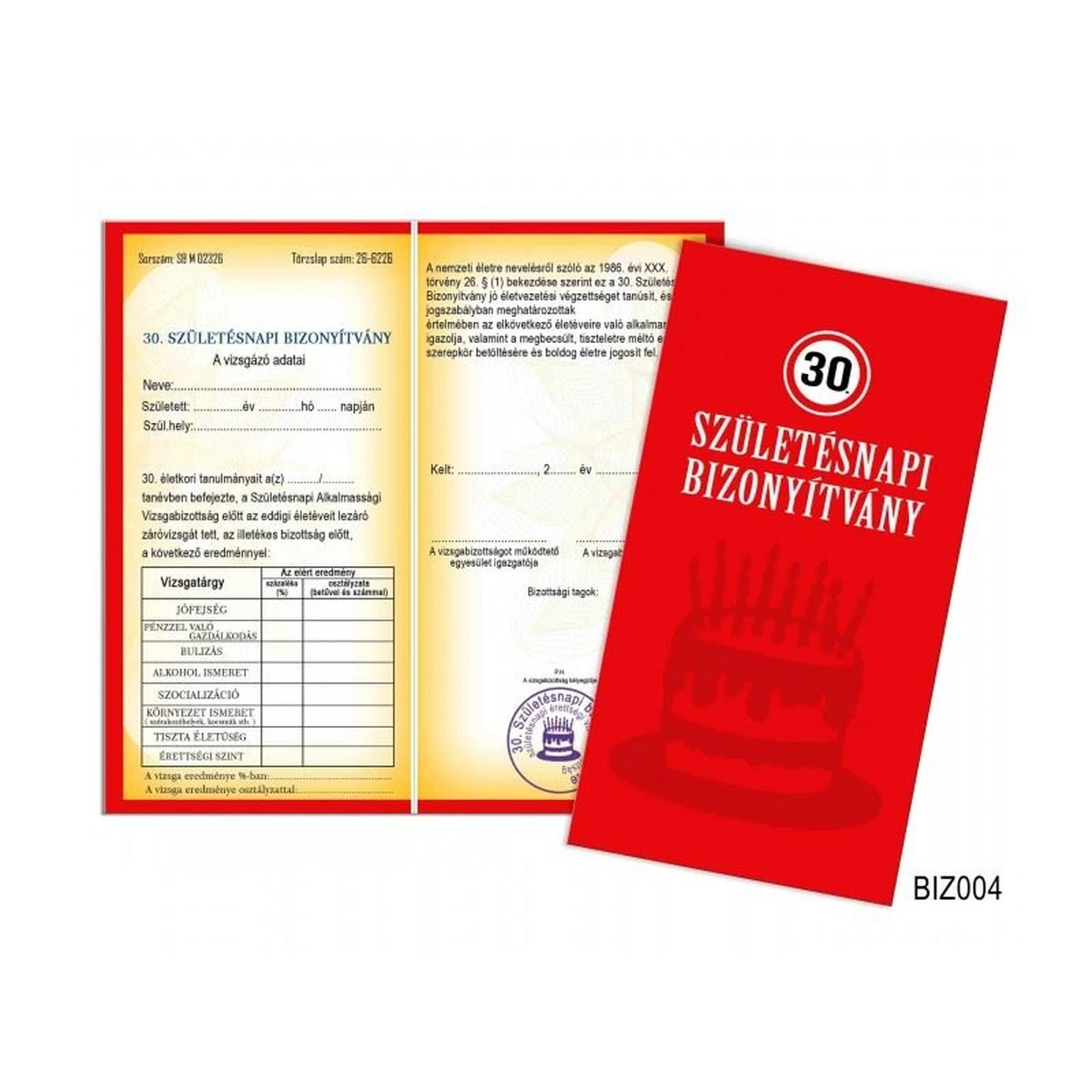 30. Születésnapi bizonyítvány