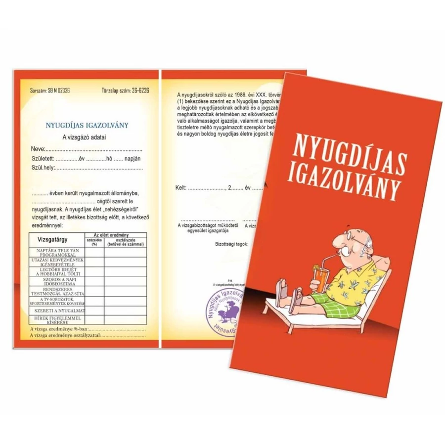Vicces bizonyítvány, nyugdíjasnak, egyedileg osztályozható tantárgyakkal, névre szólóan kitölthető.