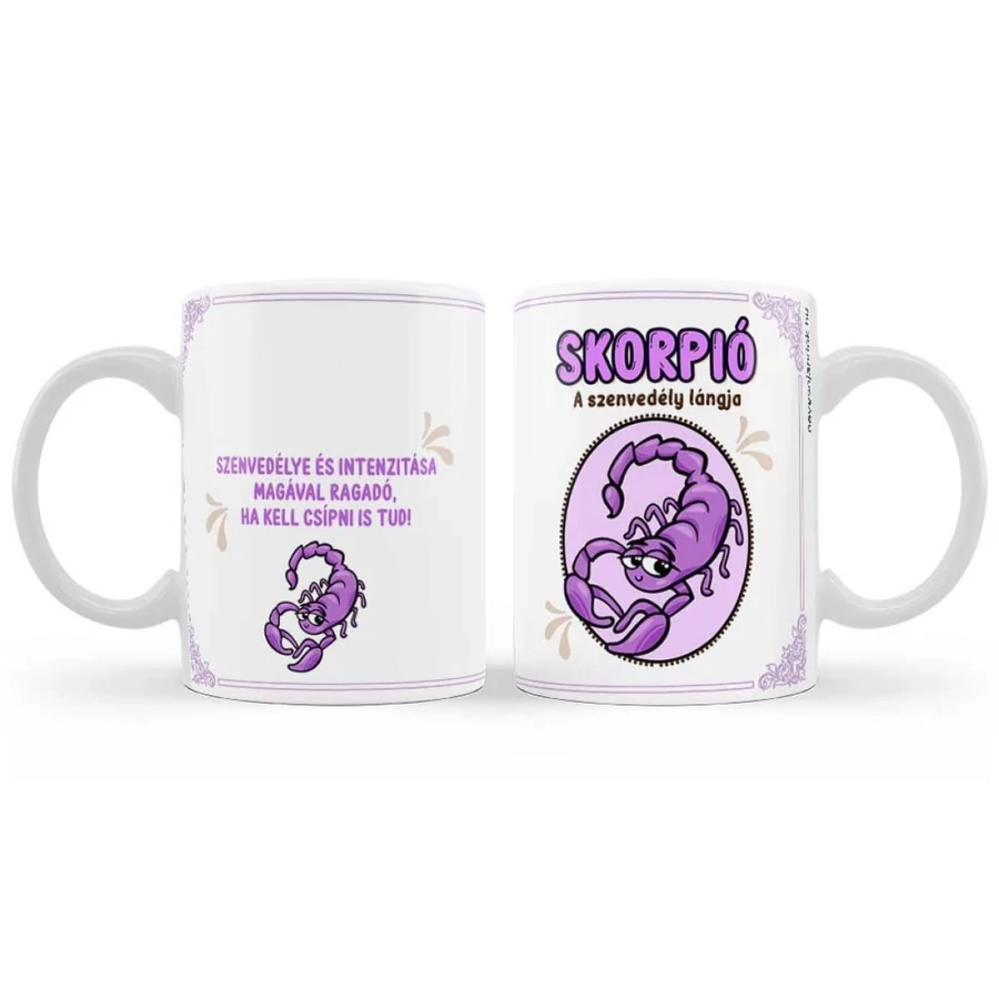 Lepd meg a szenvedélyes és intenzív Skorpió jegyűeket ezzel a különleges Skorpió horoszkópos bögrével! Ez a bögre tökéletesen visszaadja a Skorpiók erejét, titokzatosságát és határozottságát, miközben egy kis humort is csempész a mindennapokba.