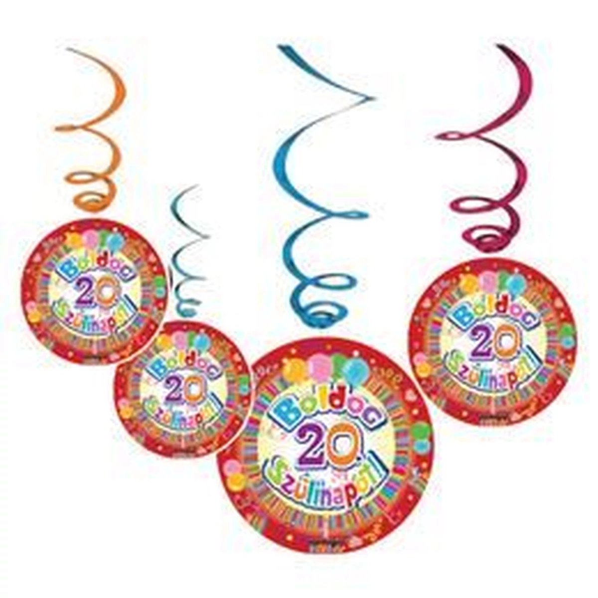 Boldog 20. Szülinapot Színes Parti Függő Dekoráció - 6 db-os