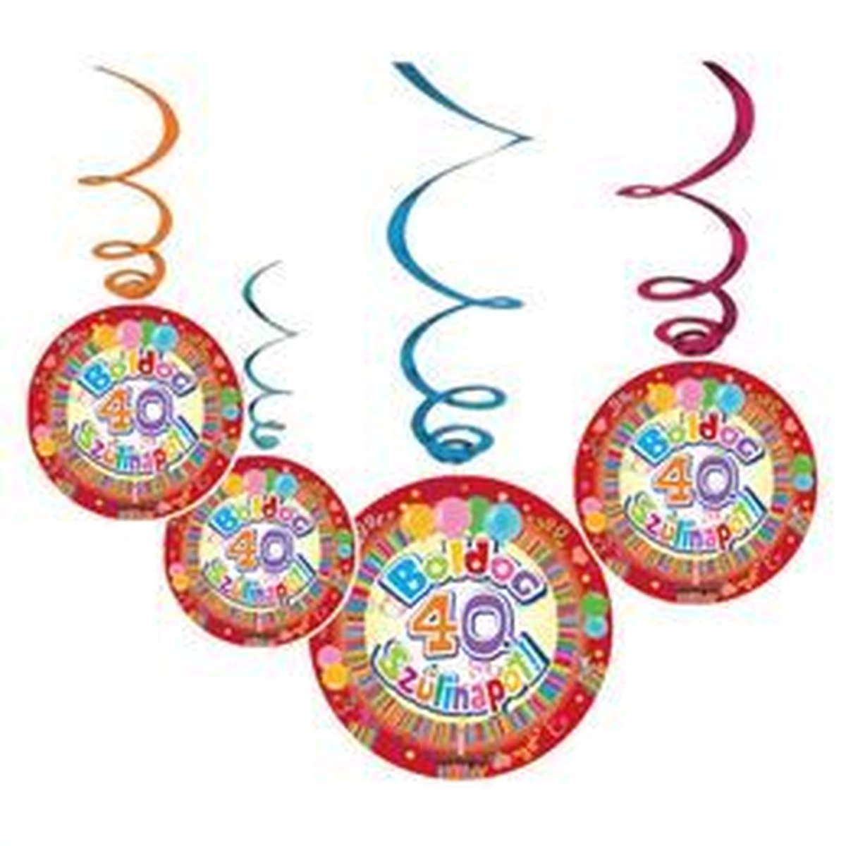 Boldog 40. Szülinapot Színes Parti Függő Dekoráció - 6 db-os