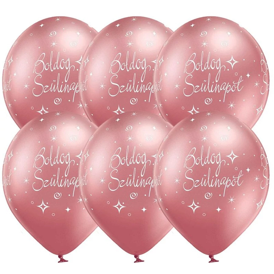 11 inch-es Boldog Szülinapot Chrome Pink - Rózsaszín Lufi (6 db/csomag) Héliummal