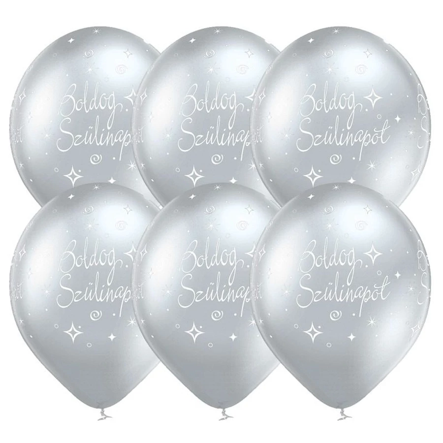 11 inch-es Boldog Szülinapot Chrome Silver - Ezüst Lufi (6 db/csomag) Héliummal