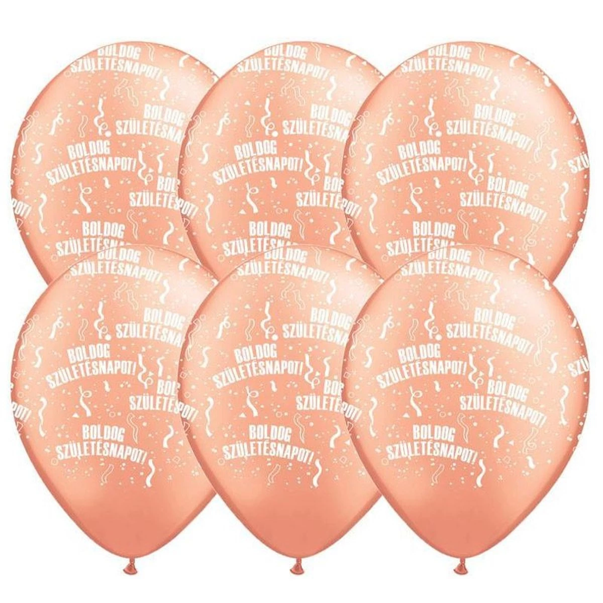 11 inch-es Boldog Születésnapot Rózsaarany - Rose Gold Lufi (6 db/csomag) Héliummal