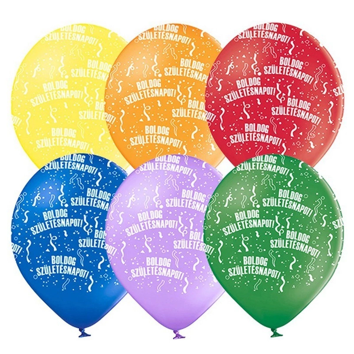 11 inch-es Boldog Születésnapot Standard Szülinapi Lufi (6 db/csomag) Héliummal