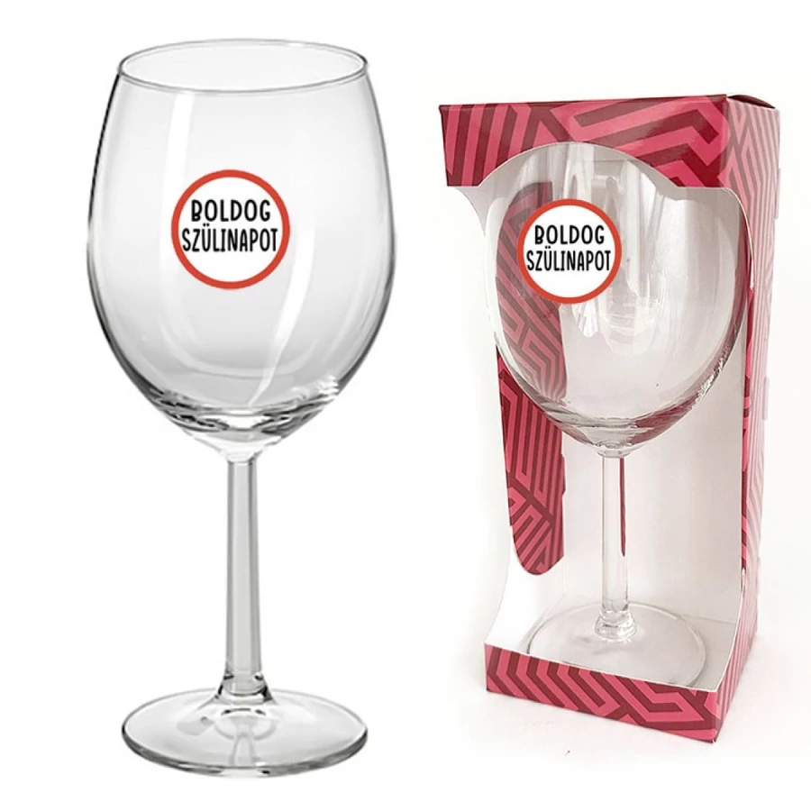 Boldog Szülinapot feliratú, sebességkorlátozós borospohár. 440 ml-es.