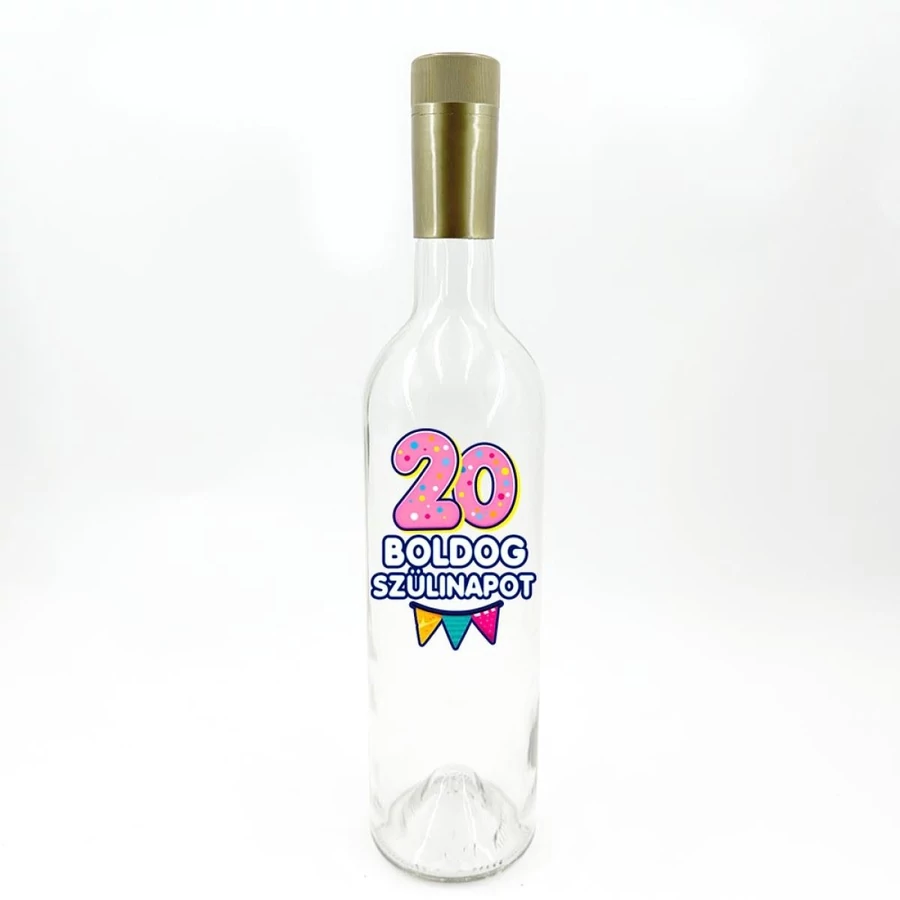 Ajándék 20. Szülinapra. Ez a stílusos és egyedi ajándék tökéletes választás minden születésnapi ünnepelt számára. A minőségi üveg nemcsak esztétikailag vonzó, de tartós és újrahasznosítható is, így környezettudatos is.
