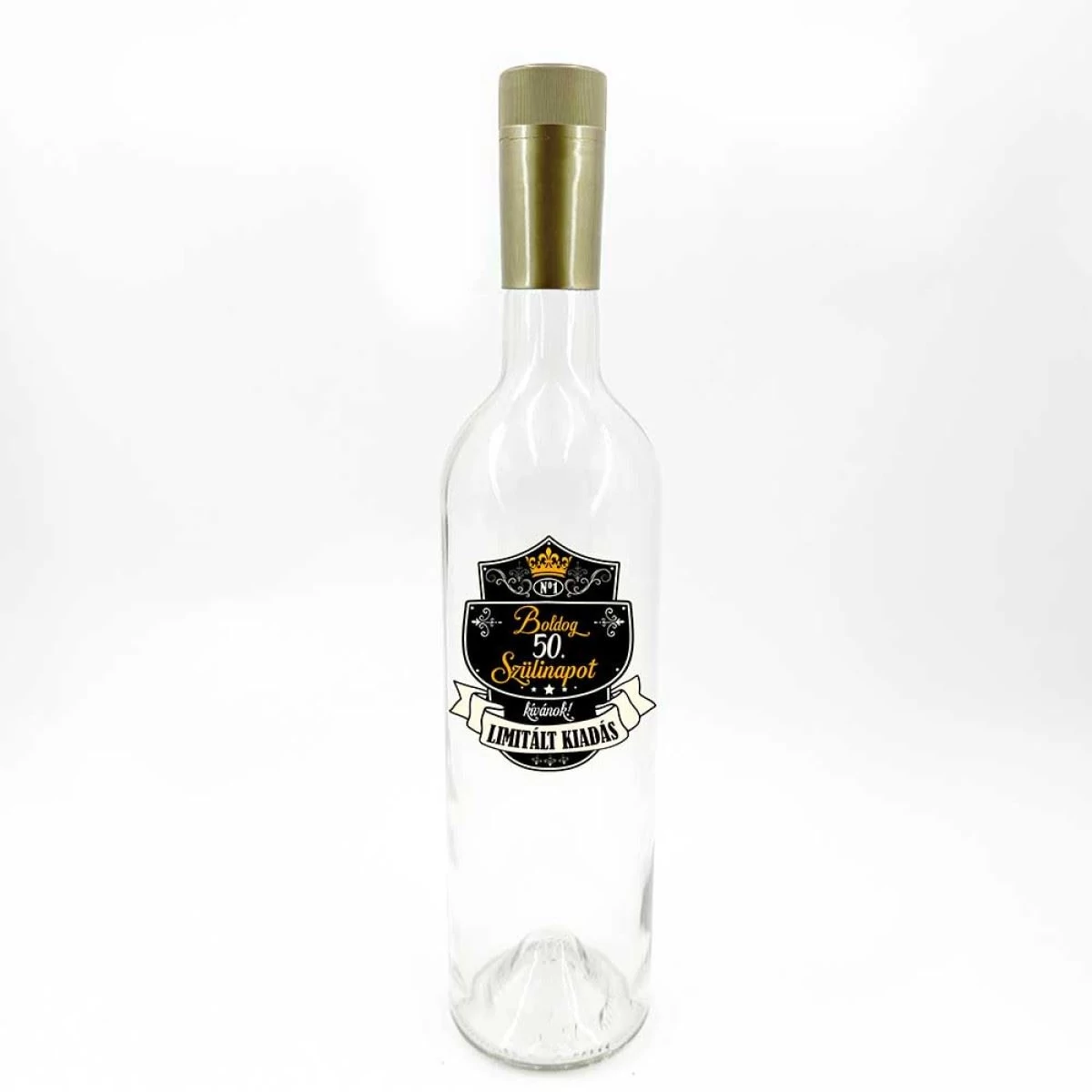 Borosüveg csavaros kupakkal, Boldog 50. Szülinapot Kívánok, Limitált kiadás felirattal. 750 ml-es.