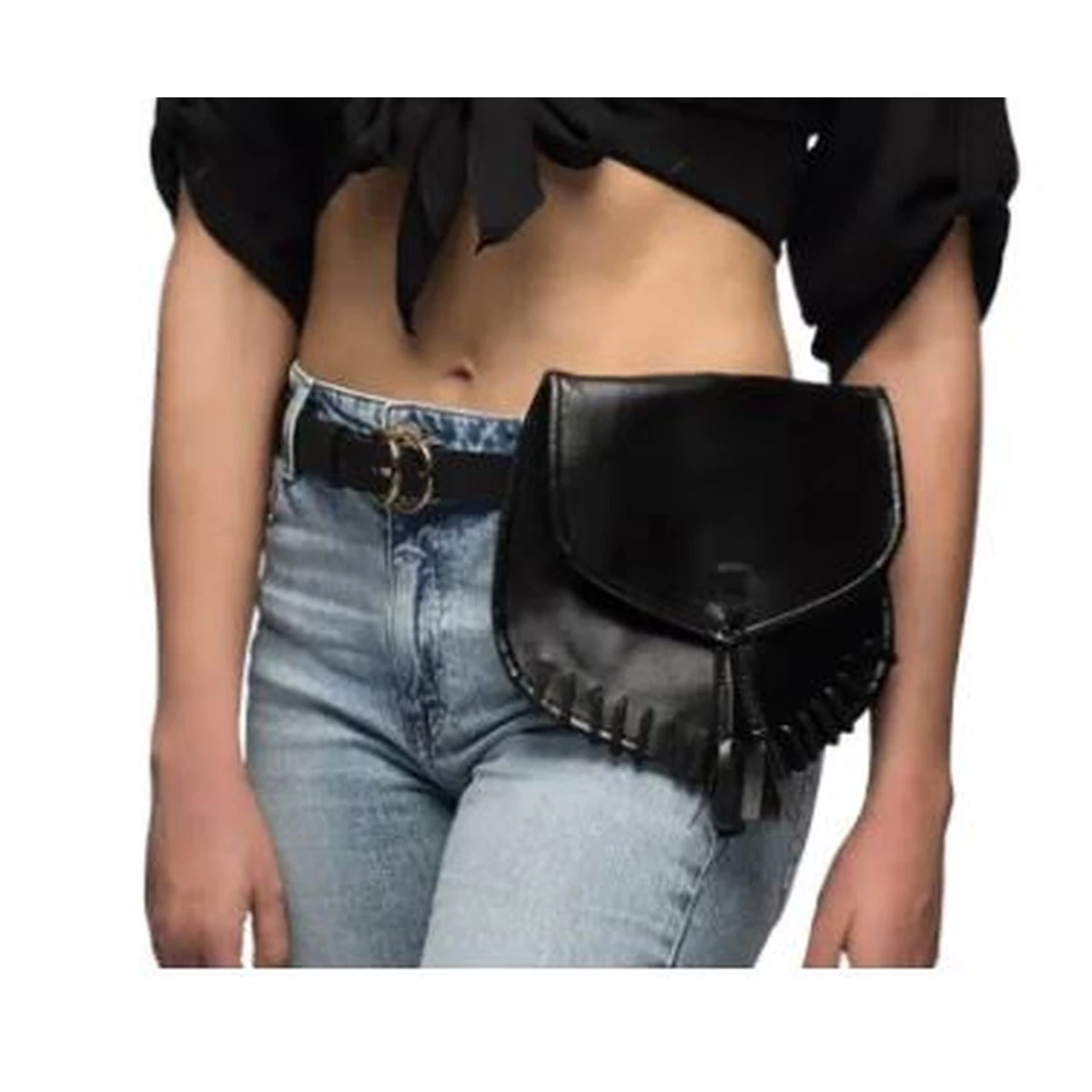 Fekete műőr anyagból készült, csípőre rögzíthető mini oldaltáska.