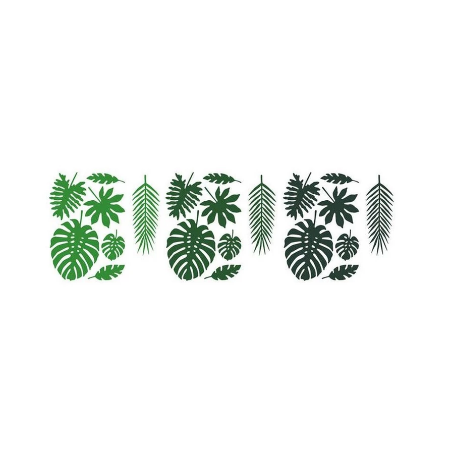 Trópusi levelek, mix, a készlet 7 különböző formájú levelet tartalmaz, mindegyik formát a zöld 3 árnyalatában.