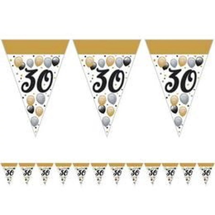 Elegáns 30-as Számos Szülinapi Léggömbös Parti Zászlófüzér - 5 m