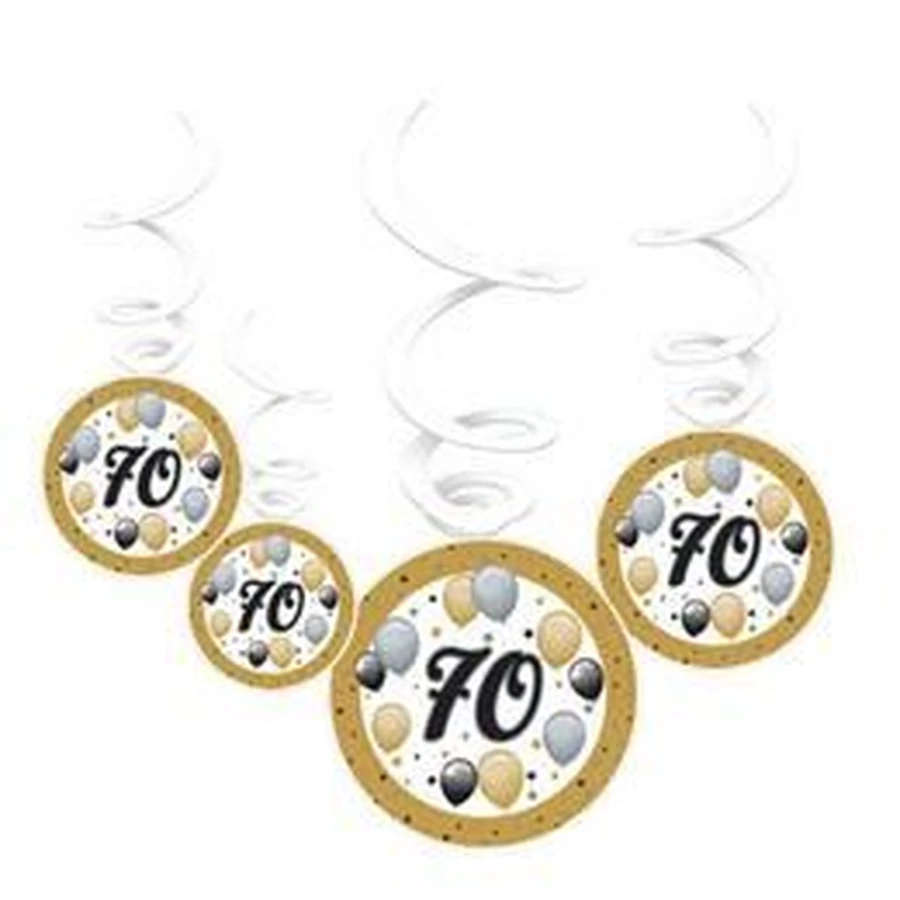 Elegáns 70-es Számos Szülinapi Léggömbös Parti Spirális Függő Dekoráció, 6 db-os