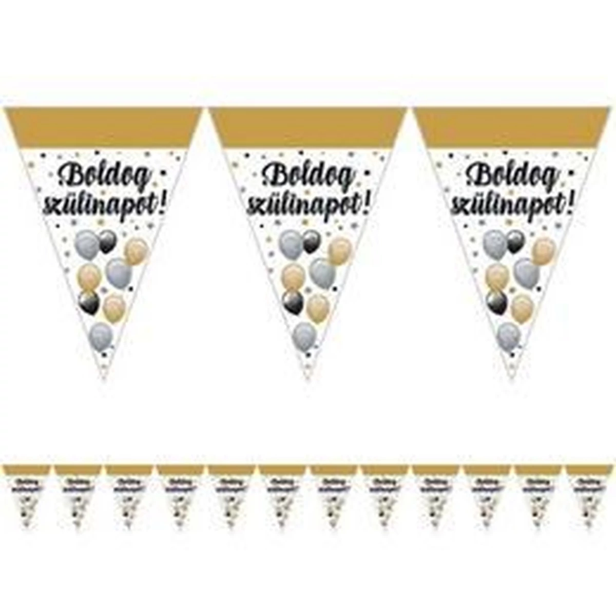 A zászlófüzér dekorációi nincsenek egybe fűzve. Minden egyes zászlót neked kell a szalagra befűzni. Viszont ennek köszönhetően tetszés szerint tudod mér