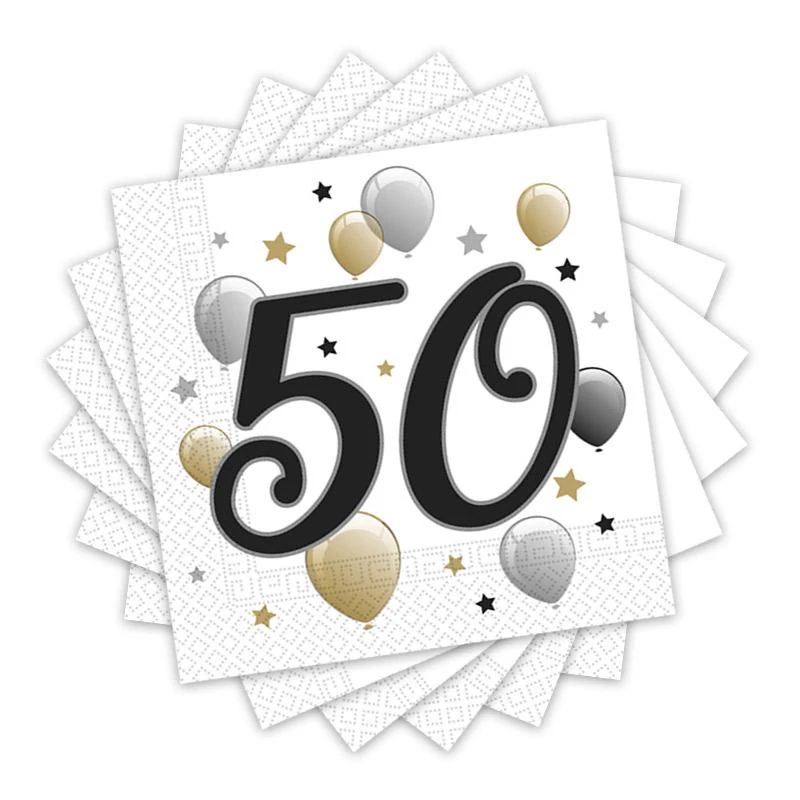 Elegáns Léggömbös 50-es Számos Szülinapi Parti Szalvéta - 33 cm x 33 cm, 20 db-os
