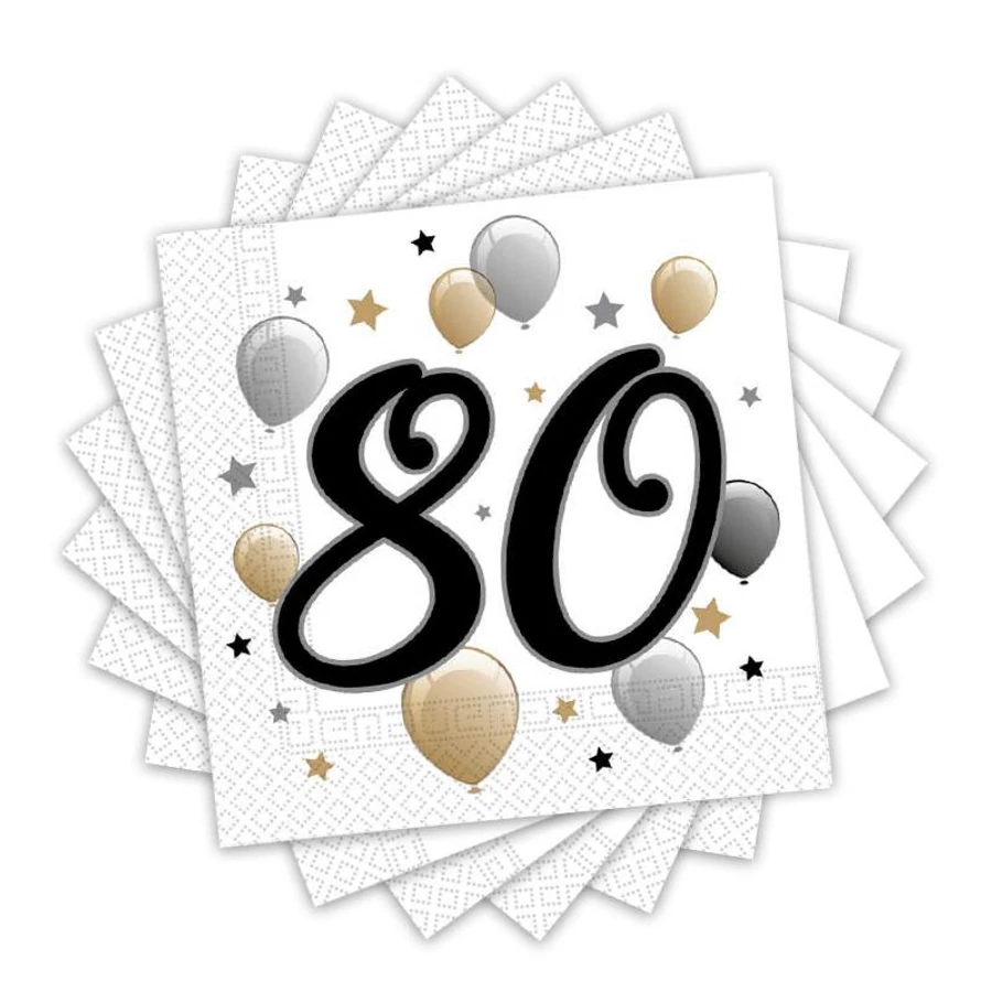 Elegáns Léggömbös 80-as Számos Szülinapi Parti Szalvéta - 33 cm x 33 cm, 20 db-os