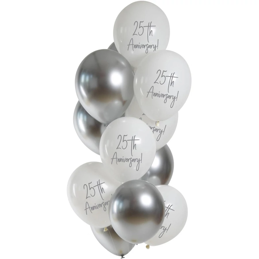 Ezüst lufik 25. évfordulós 33cm - 6 darab, Héliummal