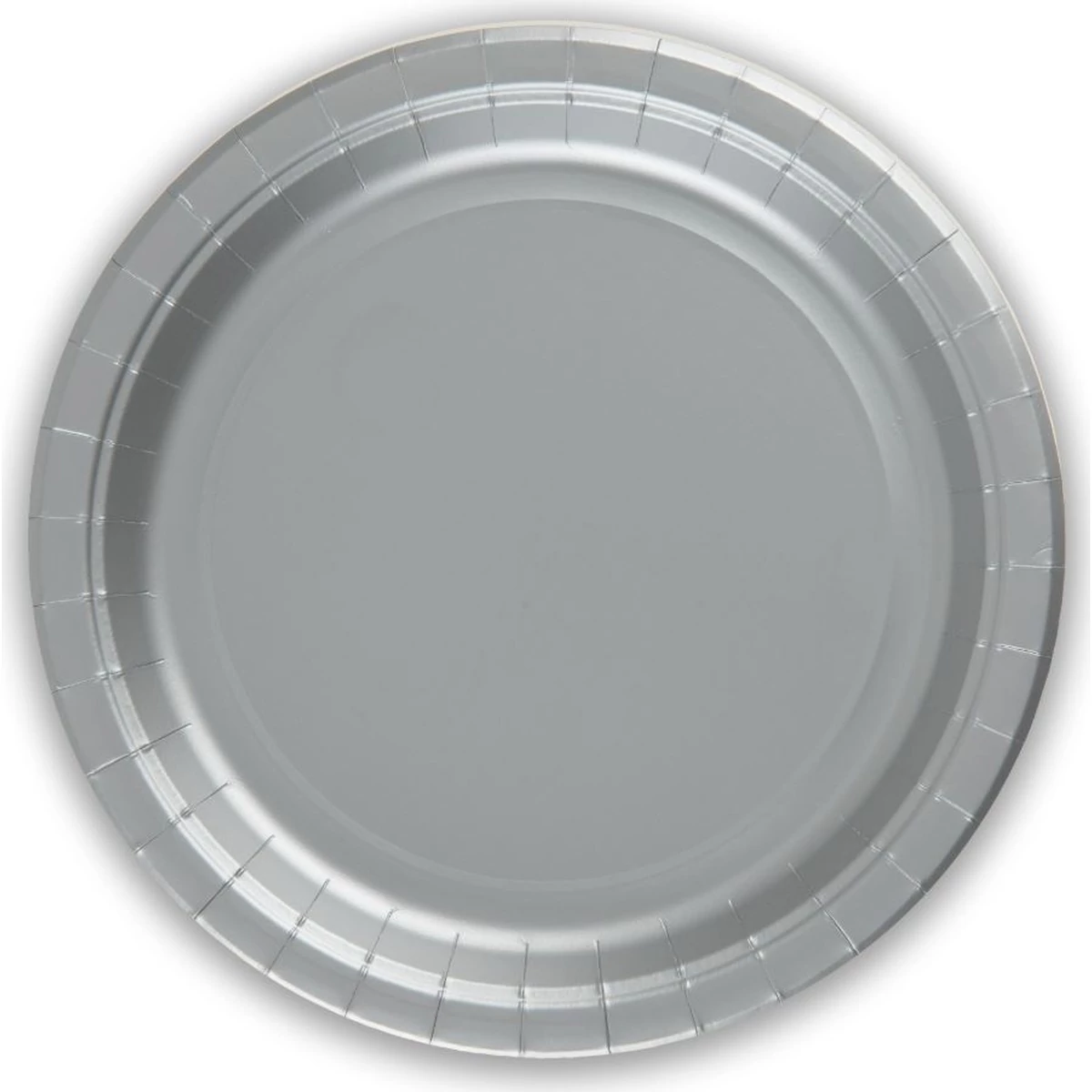 23cm átmérőjű, ezüst színű papírtányér 8db-os kiszerelésben.
