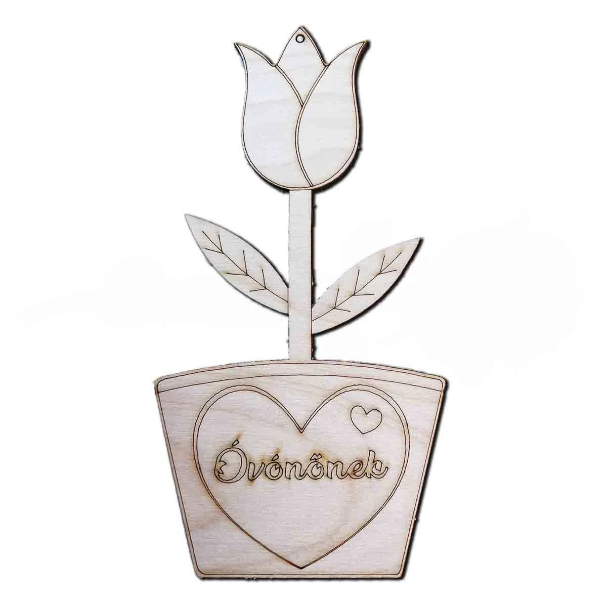 Akasztójának köszönhetően könnyen bárhol elhelyezhető, kedves kis dísztárgy. A fa tulipán 20 cm magas és 10,5 cm széles, 3 mm vastagságú fából készült.
