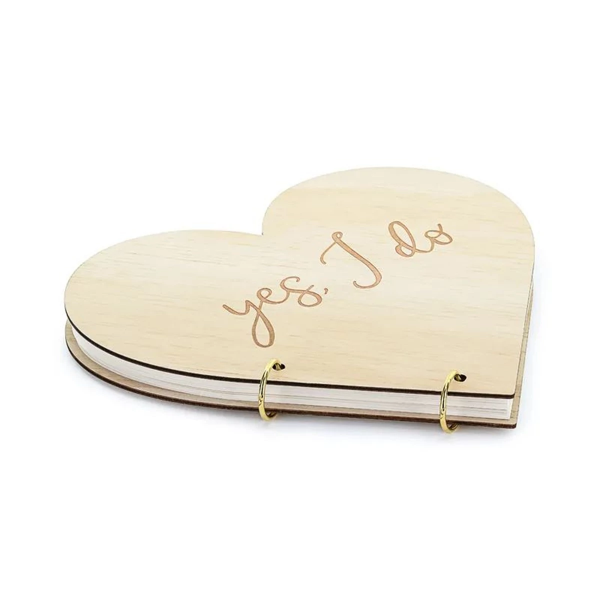 Szív alakú fából készült vendégkönyv „Igen, igen” felirattal, 40 oldalas írásra, mérete kb. 26,5 x 25 cm.