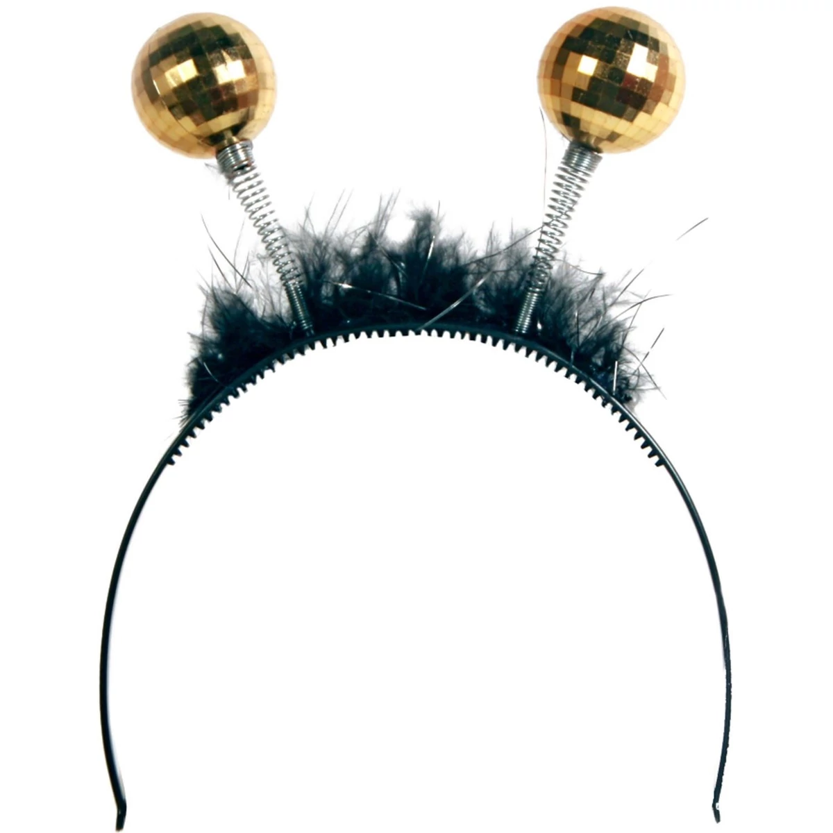 Ez a fekete tiara arany diszkógömb díszítéssel a tökéletes választás, ha egy elegáns, mégis szórakoztató kiegészítőt keresel a következő rendezvényedhez. A műanyag anyag könnyű viseletet biztosít, miközben a csillogó arany és fekete színű dizájn igazán figyelemfelkeltő.